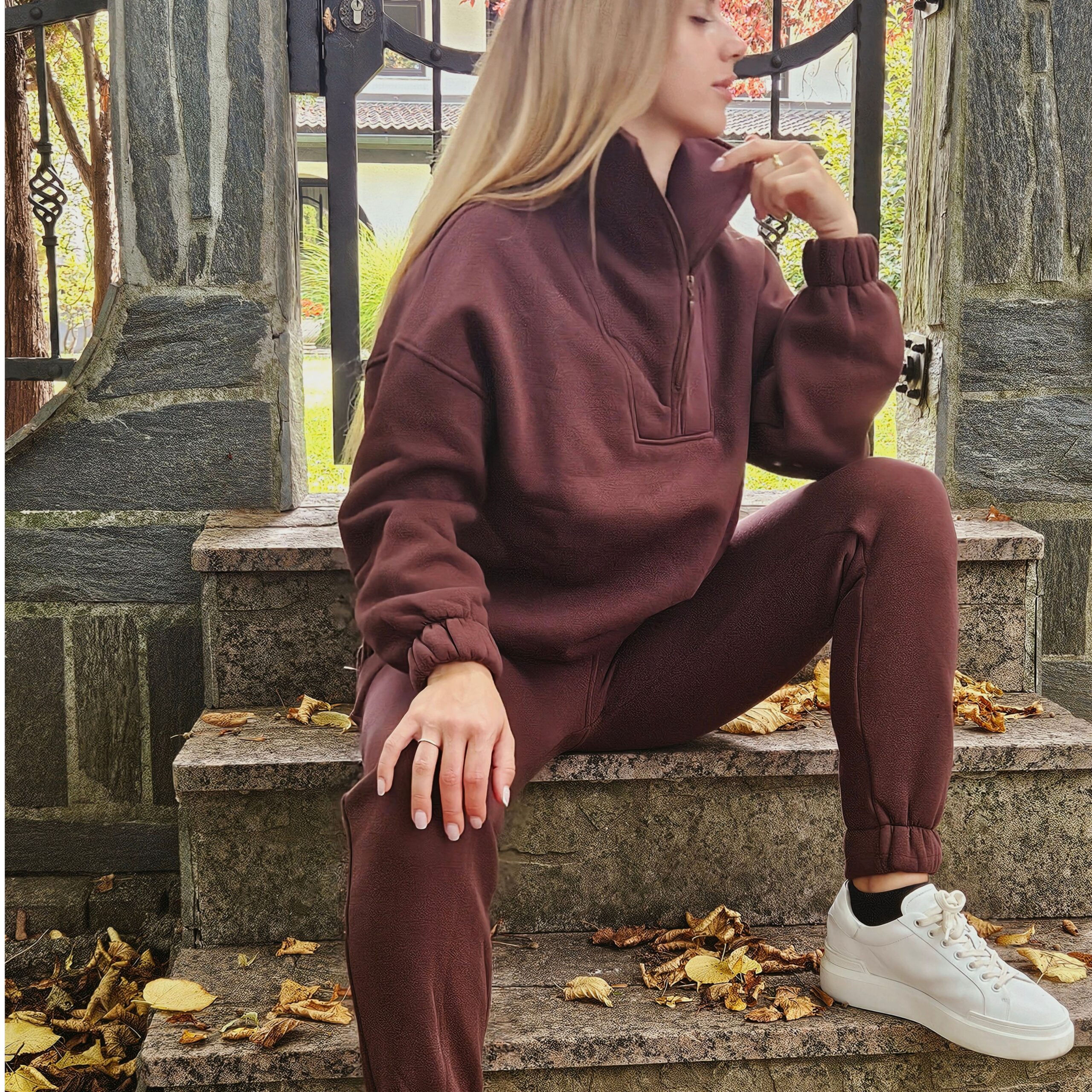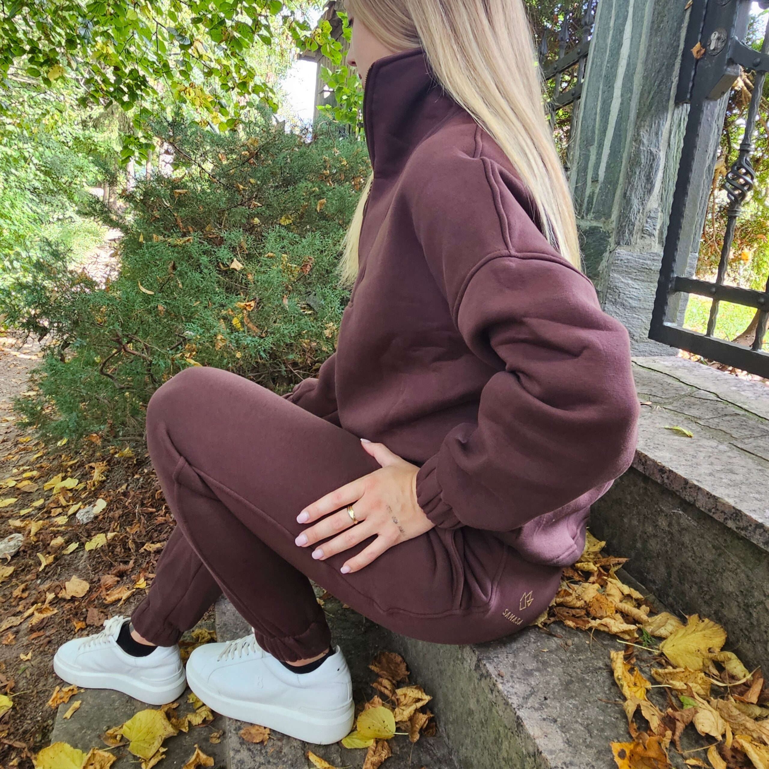 Izjemno mehki pulover v temno rjavi barvi. Trenirka je podložena (kosmatena) in topla.